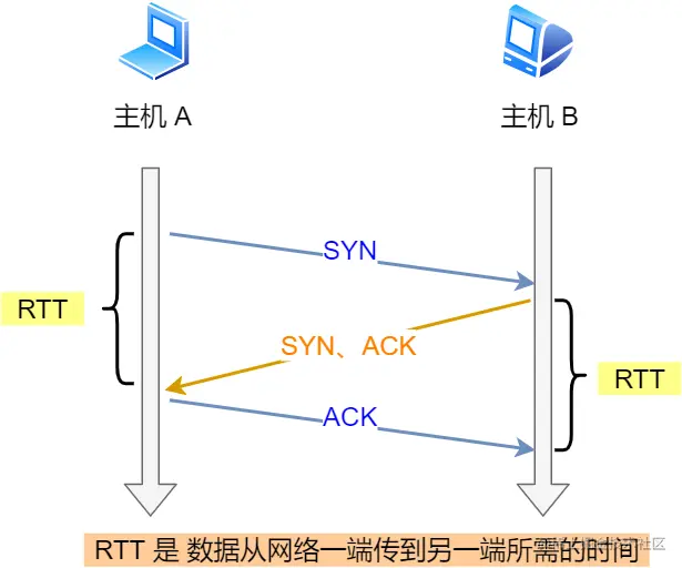 我们先来了解一下什么是 RTT(Round-Trip Time 往返时延),从下图我们就可以知道: