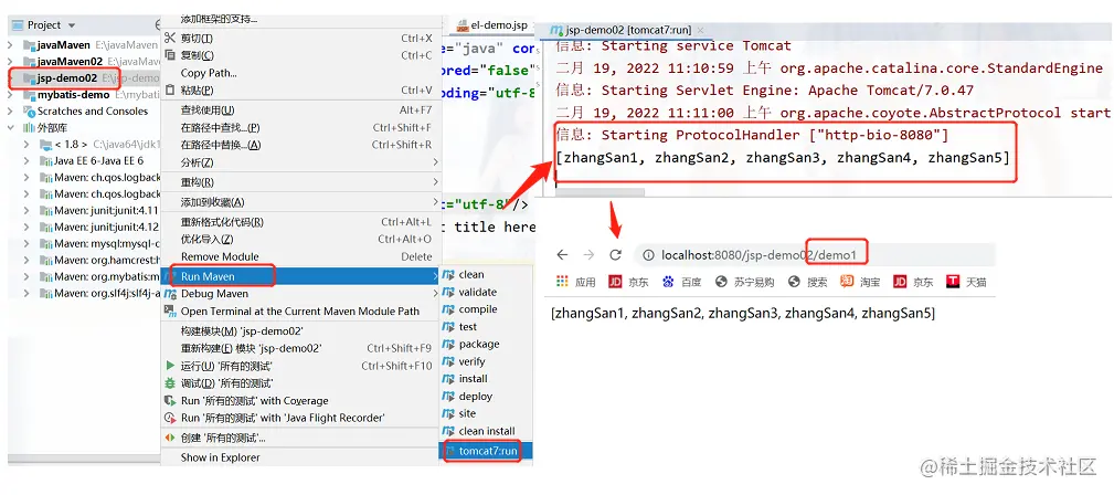 在web.app目录下创建el-demo.jsp,其中写入${lists}即可