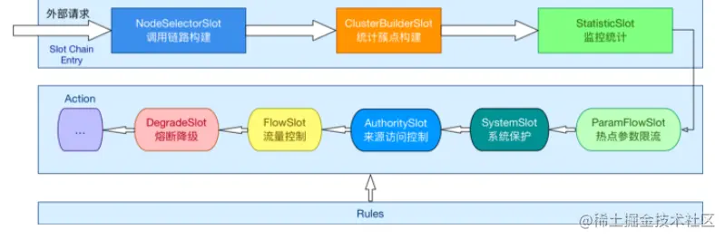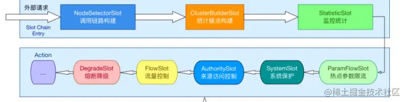 目前大概对Sentinel所有框架提供的链路节点已经有了一个初步的了解,接下来就深入到节点中看具体的实现。