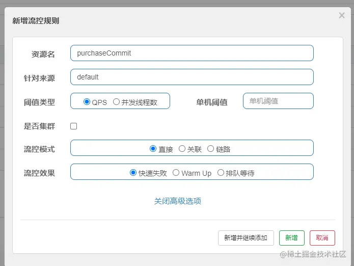 以下是Sentinel控制台提供给我们的配置界面