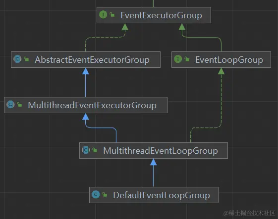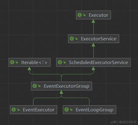 我们在使用线程组的时候一般都会先创建线程池,然后调用线程池的执行方法执行具体的任务,在netty中也是进行了划分,组为EventLoopGroup,执行者EventExecutor其共同的父类是EventExecutorGroup