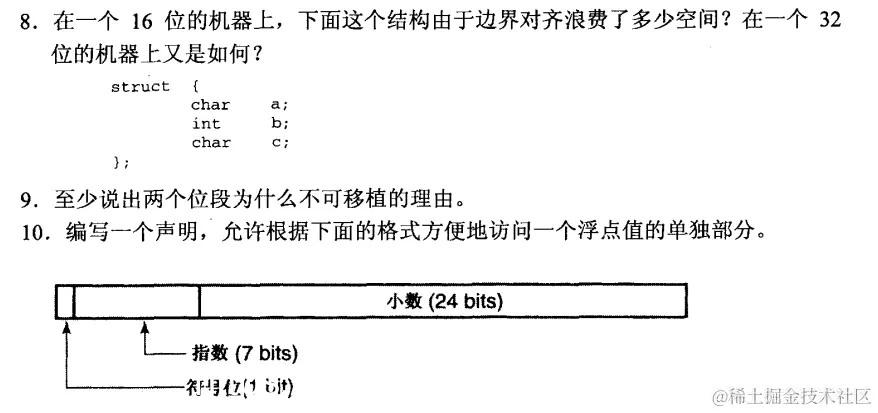 9:a.字段是从右到左分配还是从左到右分配; b.字段是否太大,不能容纳一个单词的剩余比特,无论如何从那里开始,跨越边界到下一个单词或从下一个单词开始;C:对于声明为signed的字段,是否使用signed或unsigned算术;和.单个字段的最大大小。