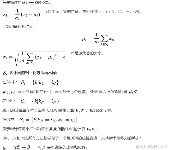 上图为四种归一化方法,其中N为批量,C为通道,(H,W)表示feature map,蓝色像素代表相同的均值和方差归一化。