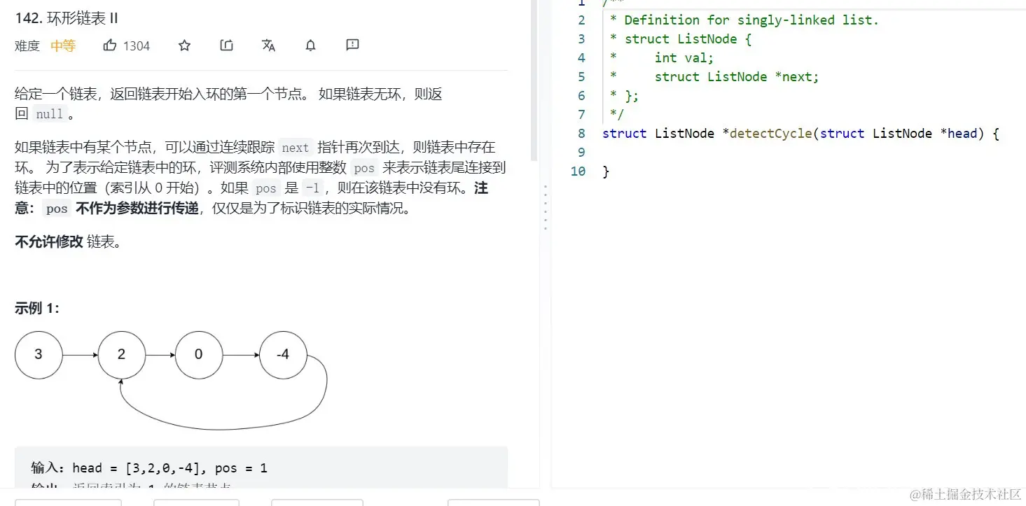 struct ListNode*detectCycle(struct ListNode*head)