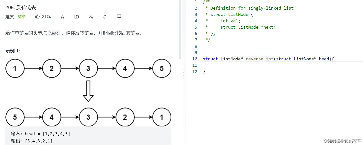 代码实现:struct ListNode* n1=head,*n2=n1->next;