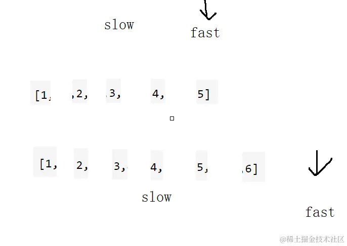当链表的长度为偶数时:当长度为偶数时,fast指针指向为空时即停止