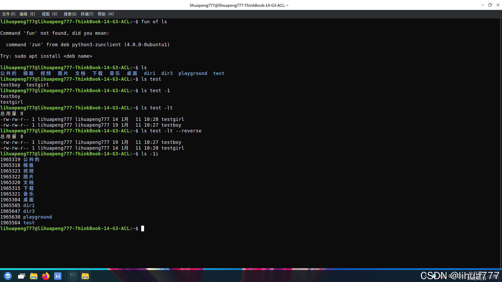 比如这里,我是ls test,想看看test这个文件夹里面装了啥