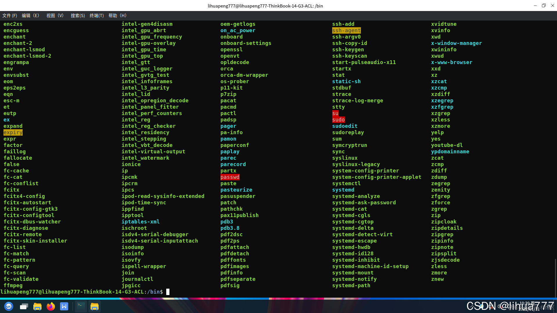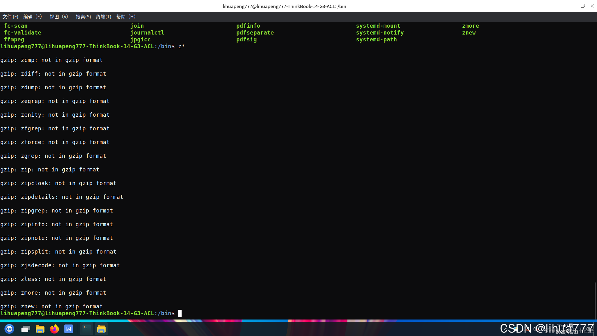 在bin文件夹中,输入z*,即显示所有头字母是z的文件了