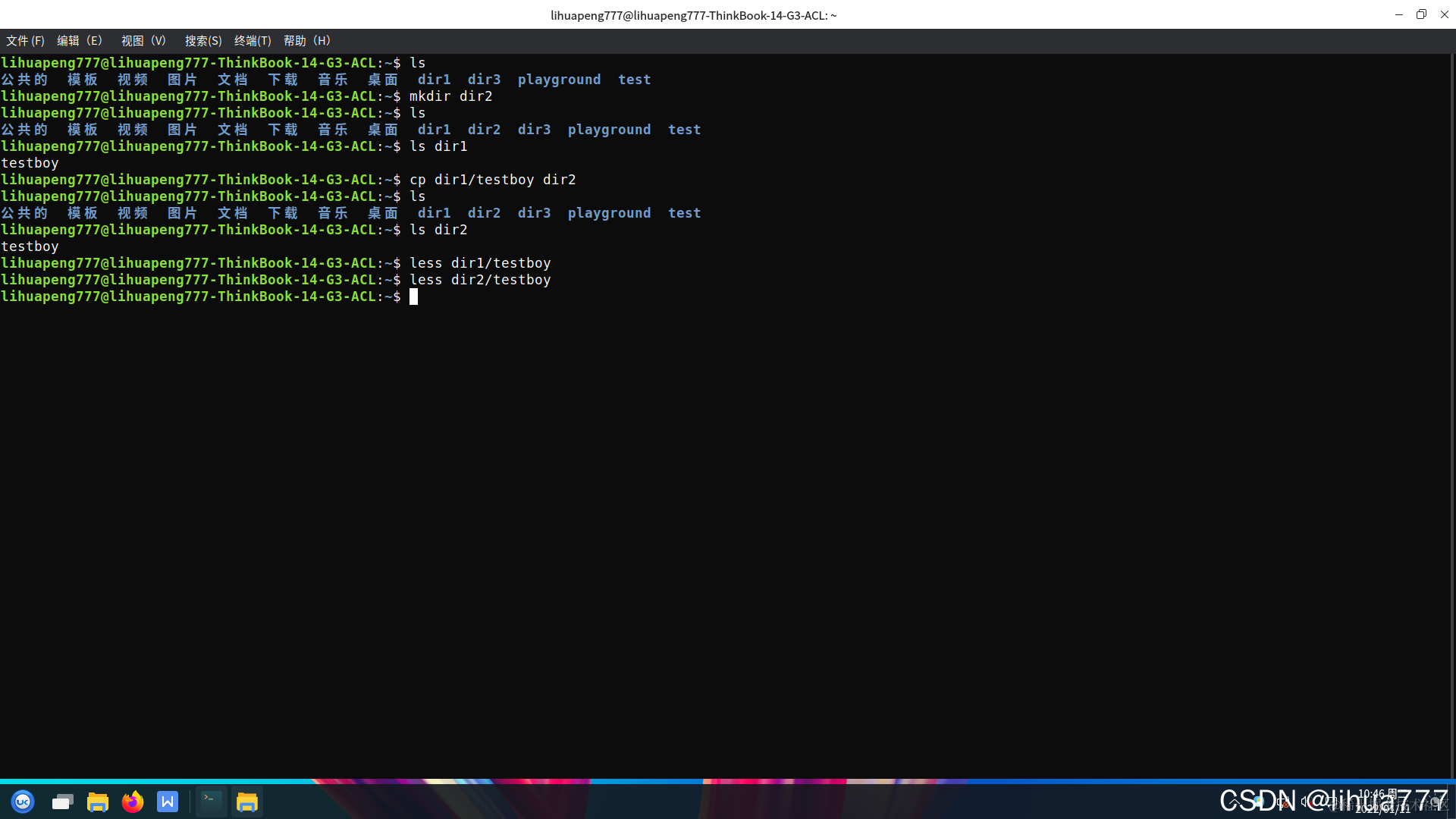 支持文本复制到目录中 以上面为例:cp dir1/testboy dir2