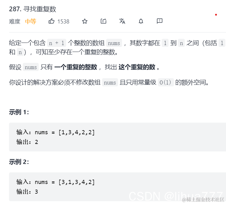 二分查找的思路是先猜一个数(有效范围 [left..right] 里位于中间的数 mid),然后统计原始数组中 小于等于 mid 的元素的个数 cnt:如果 cnt 严格大于 mid。根据抽屉原理,重复元素就在区间 [left..mid] 里;