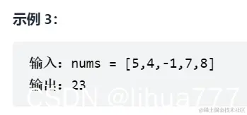 分析好后,代码其实很简单:得到一个新数组,再求出这个数组的最大值即是:最大子数列和