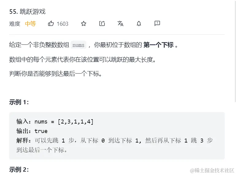 解释:如果你想要+ if(max_far>nums.size()-1) break 可以是可以,我也是这么想的,但是并没有提升运行速度 = =