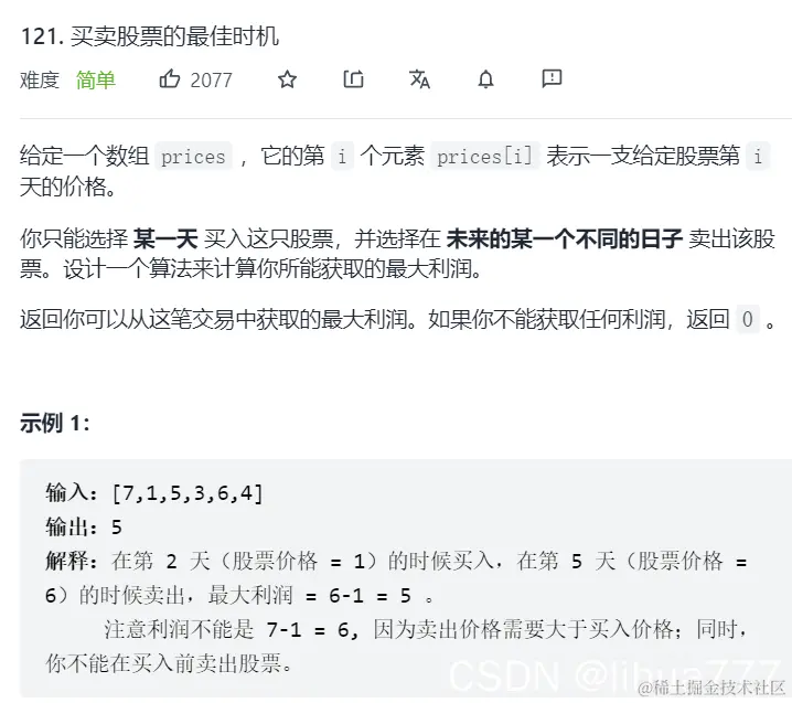 定义一个min=prices[0],和maxprofit=0,遍历数组,