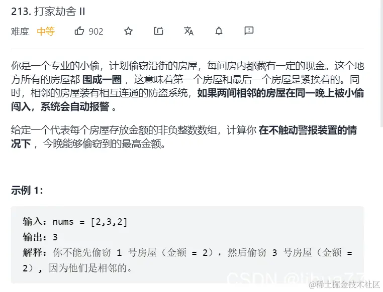 之后就是打家劫舍的问题了:即如果你选择了一个数,那么你就不能选择与它相邻的两个数