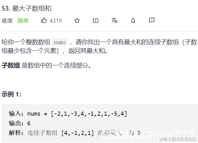 (5)返回值:结合dp数组的定义可知,dp数组的最后一个数并不一定是那个最大的数,因为会存在[1,3,5,4,7]这种情况,映射到dp数组就是[1,2,3,1,2] 所以我们需要用一个变量来记录dp数组的最大值