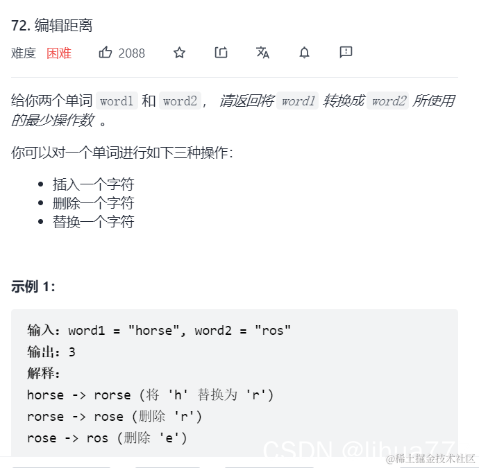 (1)dp[i][j] 表示以下标i-1为结尾的字符串word1,和以下标j-1为结尾的字符串word2,最近编辑距离