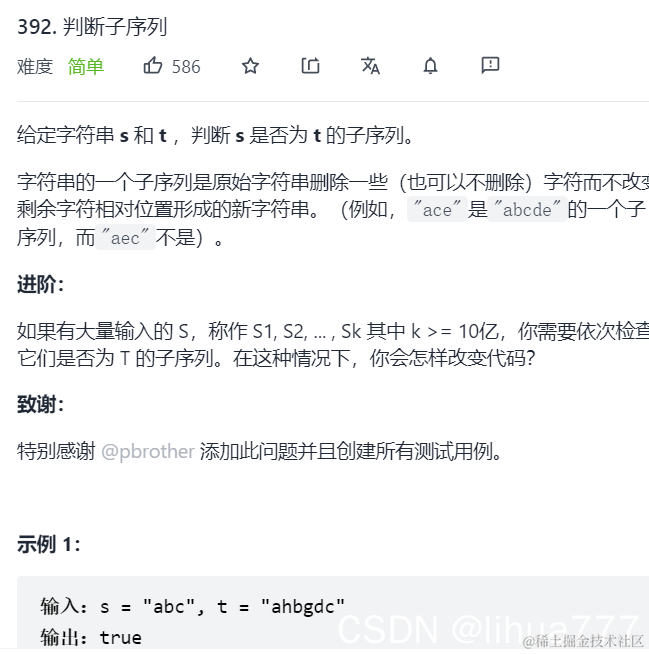 (1) dp[i][j] 表示以下标i-1为结尾的字符串s和以下标j-1为结尾的字符串t,相同子序列长度