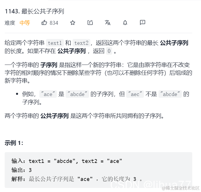 (1)dp[i][j]:长度为[0, i - 1]的字符串text1与长度为[0, j - 1]的字符串text2的最长公共子序