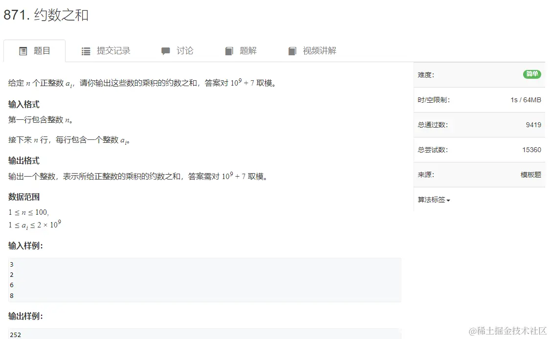 另外有性质,n中最多只包含一个大于sqrt(n)的质因子,所以我们只需要枚举[ 2 , n ] 质因子,然后特判一下n最后是否大于1就可以了