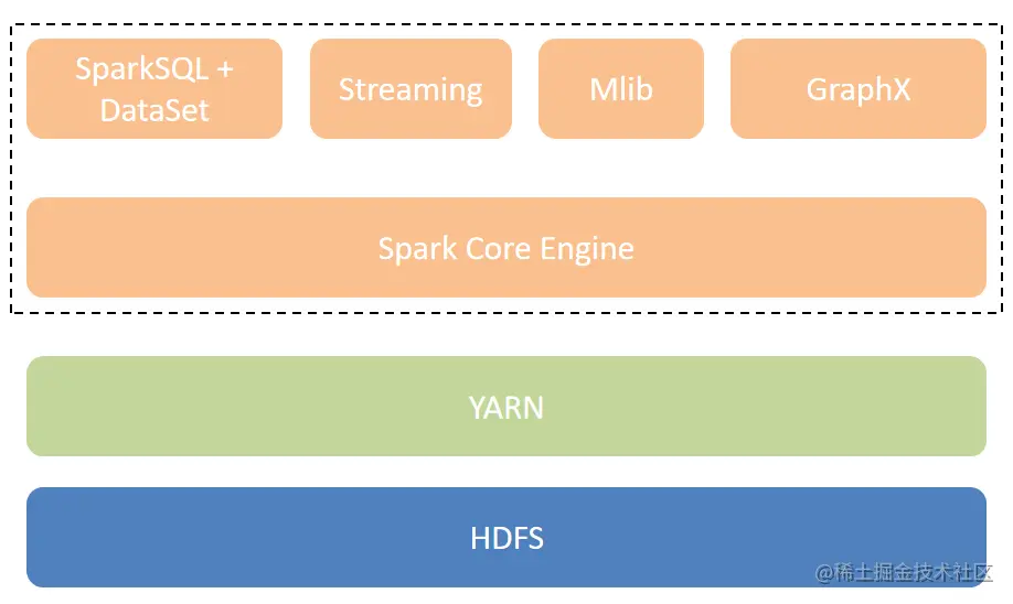 Hadoop对数据的处理、加工依赖引擎MapReduce,在计算过程中需要将中间数据刷写到磁盘,导致计算效率较低,并且MapReduce编程模型较为复杂,实现简单的WordCount也要写很长的代码。Spark1.0的出现,解决了部分问题,1.0阶段最重要的四个特性。1. 引入内存计算的理念解决中间结果落盘导致的效率低下。早期官网中给出数据,在理想状况下,性能可达到MR的100倍。
