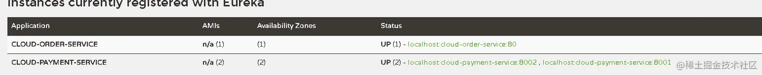 - 这里客户端如何注册和payment配置一样的。因为虽然是order调用payment,但是对于eureka来说payment和order都是客户端。所以配置都是一样的。