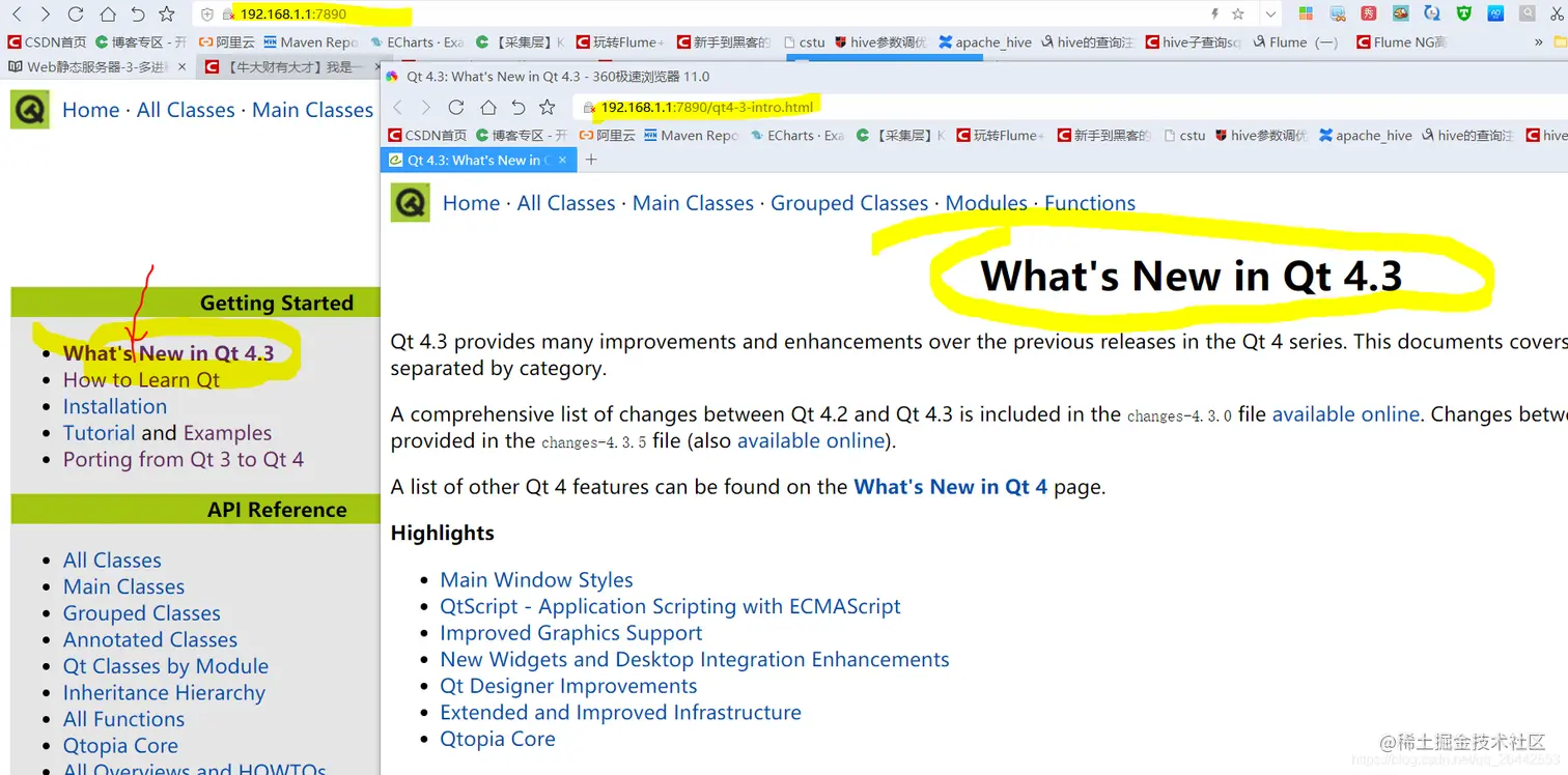 同样使用浏览器可以访问这个多线程服务器,功能上来说,也是差不多。多线程同时处理请求。