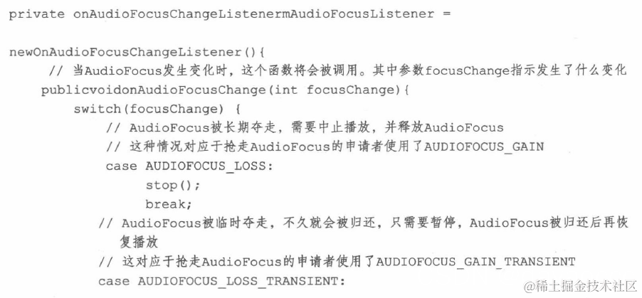 我们来看一下mAudioFocusListener是怎么实现的?