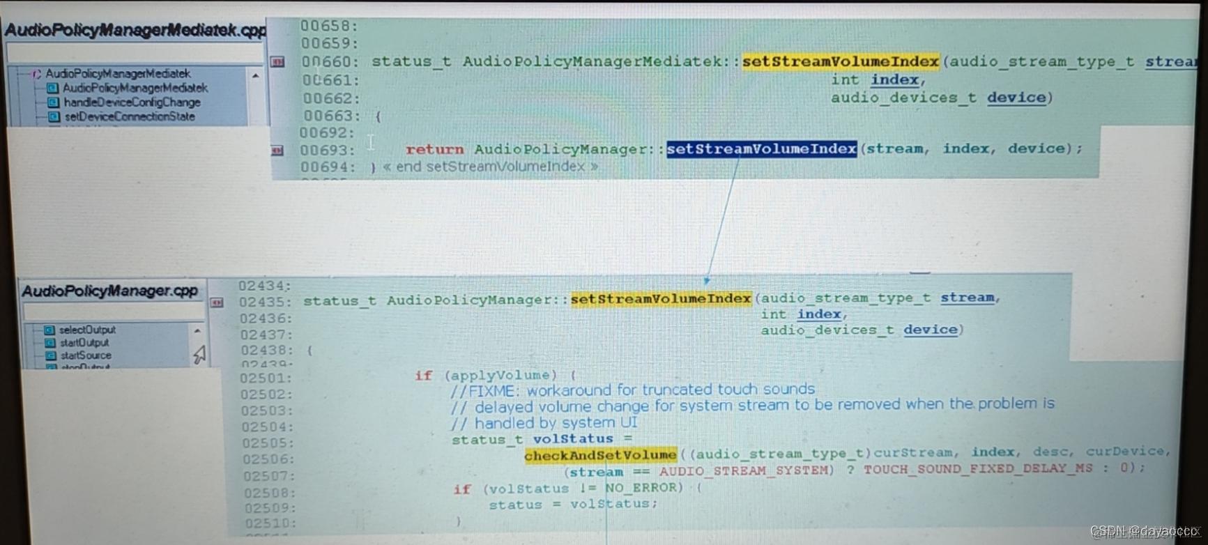 这2中方式都会call到native 层的AudioPolicyManager.cpp中的setStreamVolumeIndex()。