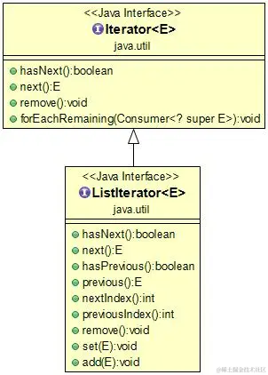 Iterator 是 Java 迭代器最简单的实现,ListIterator 是 Collection API 中的接口, 它扩展了 Iterator 接口。
