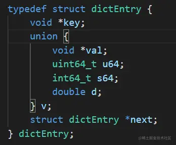 上面我们看到数组中的节点信息,是 dictEntry 结构,属性分别是这些意思: