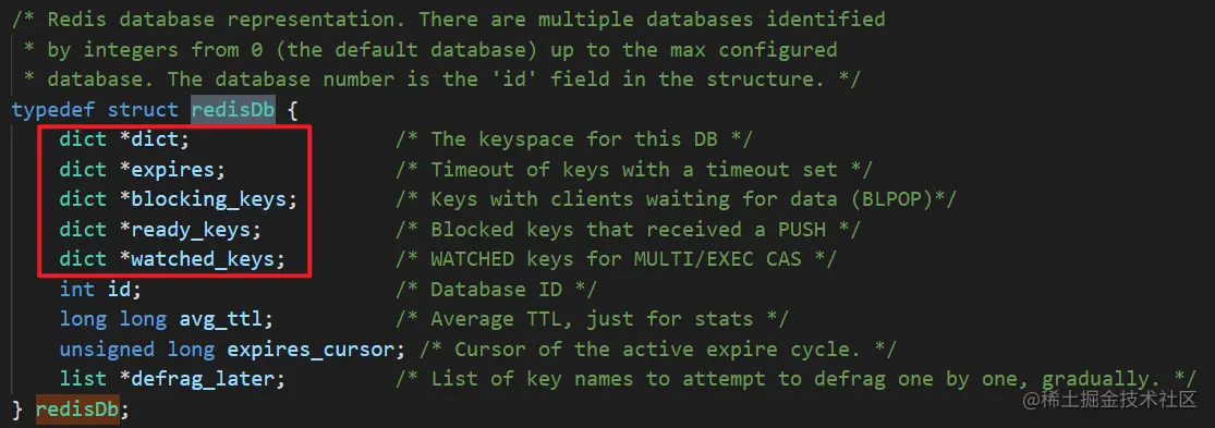 我们在 redis 源码中 src\server.h 也能够看到 redisdb 的数据结构