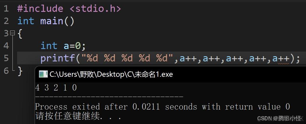 printf("%d %d %d %d %d",a++,a++,a++,a++,a++);