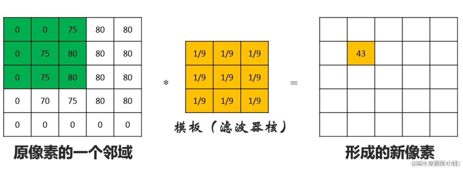 线性平滑滤波器就是求一个邻域内像素的加权均值。