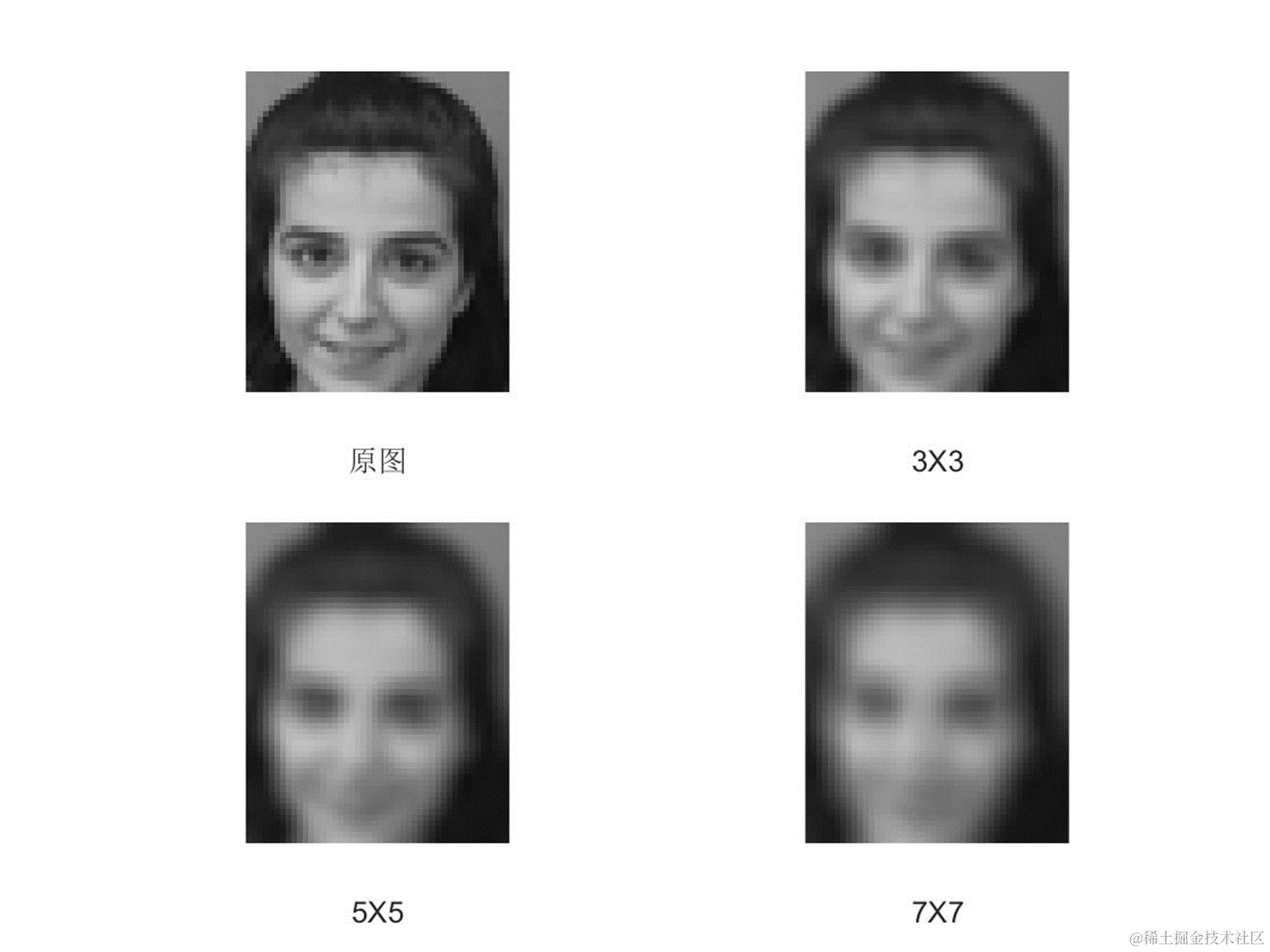 | 邻域 | 原图 | 3X3 | 5X5 | 7X7 | 11X11 |