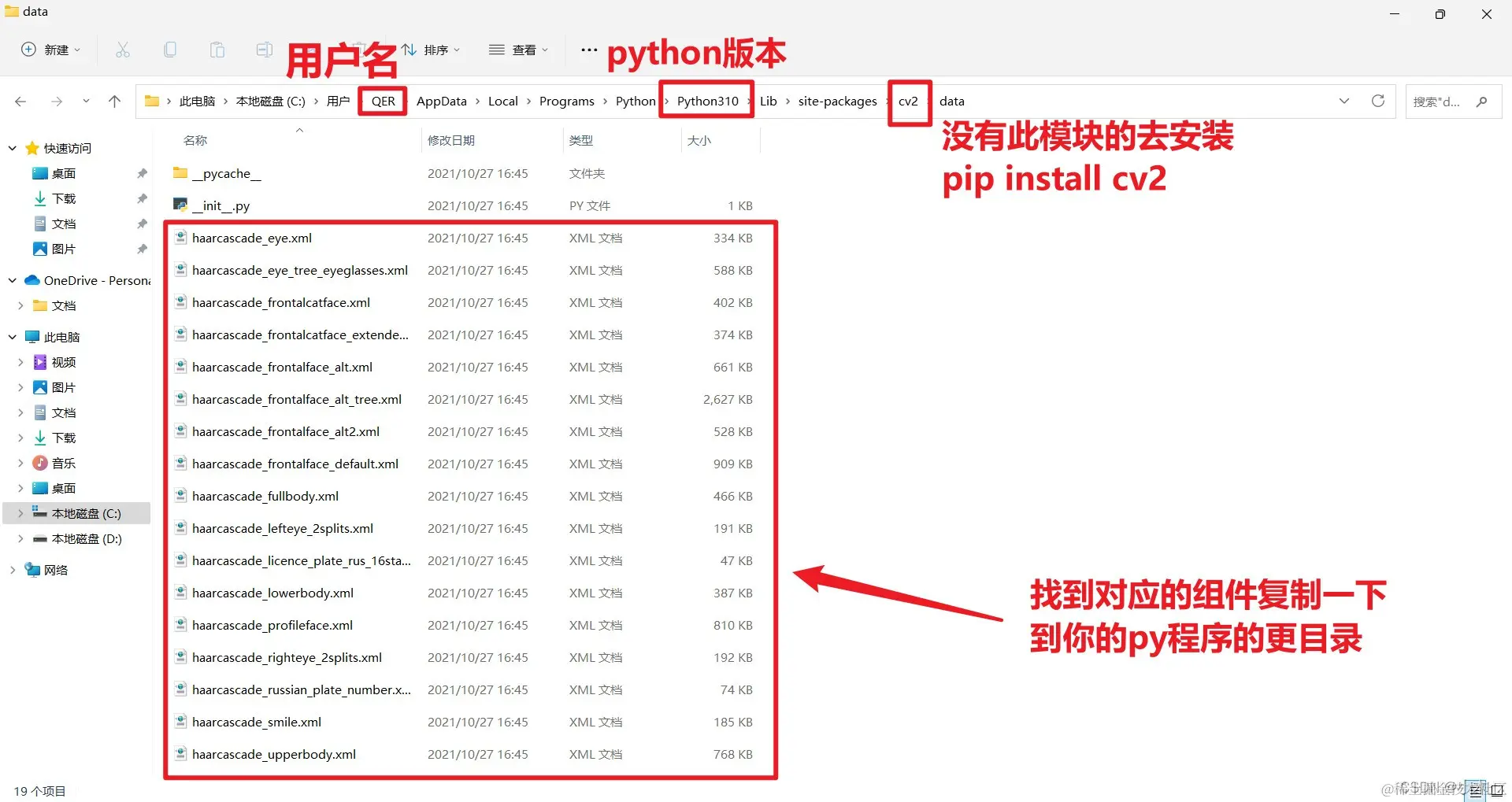 C:/Users/用户名/AppData/Local/Programs/Python/Python310/Lib/site-packages/cv2/data