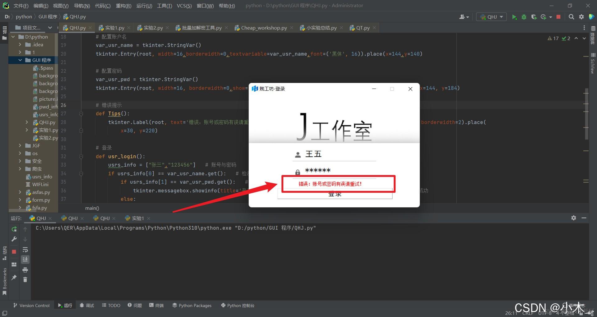 if usrs_info[0] == var_usr_name.get(): # 检测账号是否正确