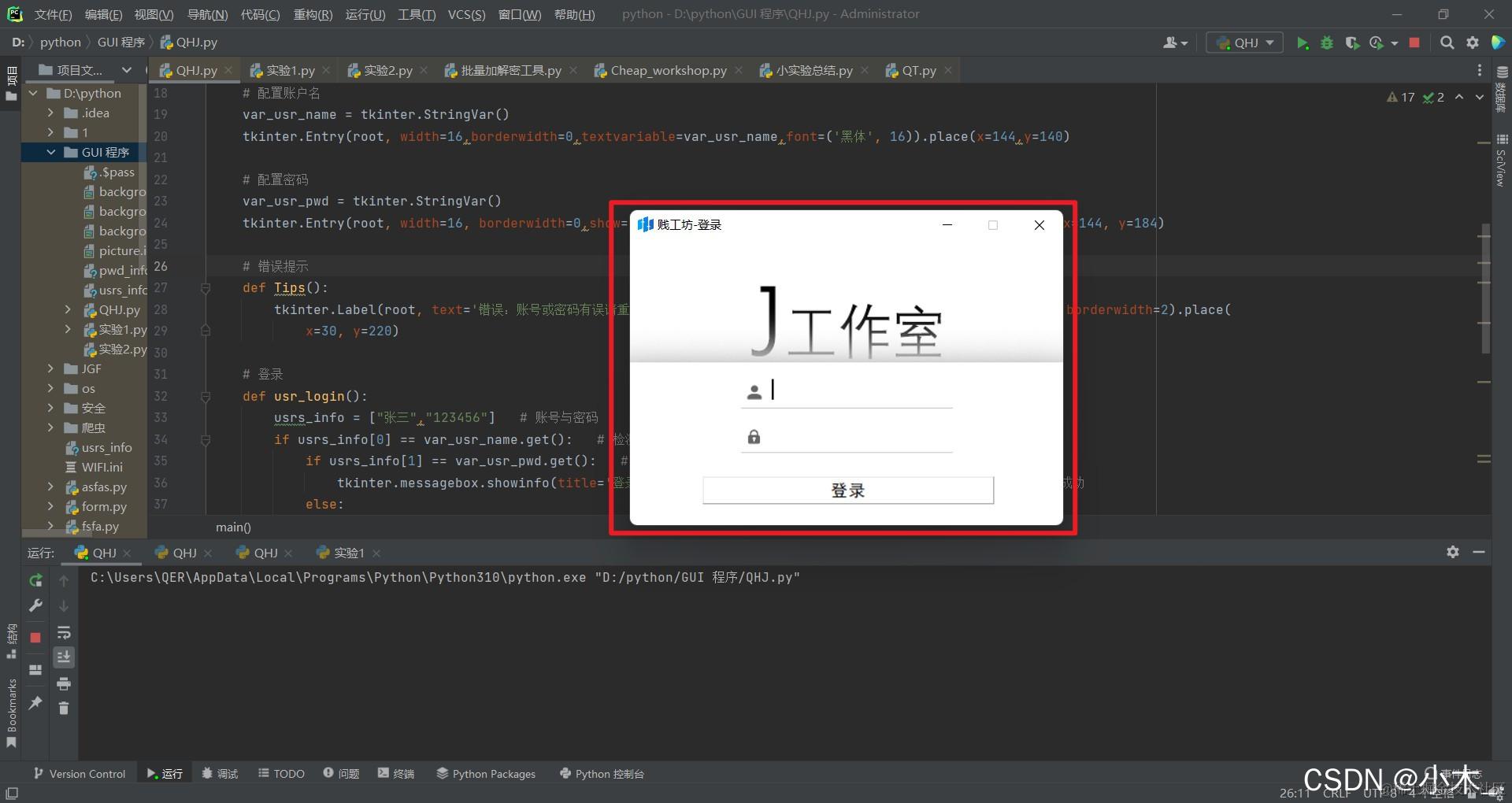 root.title('贱工坊-登录') # 程序的标题名称