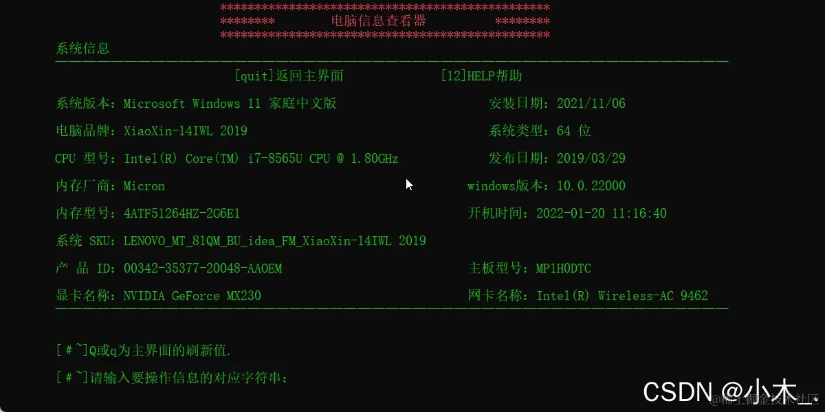 printRed("\t\t\t\t********\t电脑信息查看器\t\t********\n")