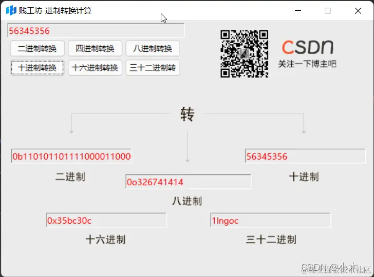 root.title('贱工坊-进制转换计算') # 程序的标题名称