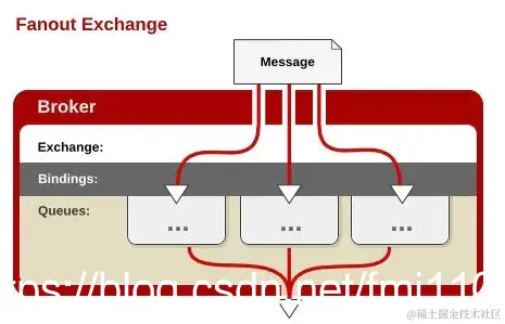 2 fanout:发布订阅,交换器将消息转发到所有与之绑定的queue上,此时消息生产者不能决定消息发往哪里,完全由交换器决定