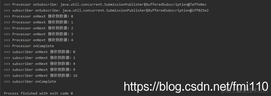 可以看到,程序是异步执行的,发布者发布事件,和观察者消费事件是异步非阻塞的。