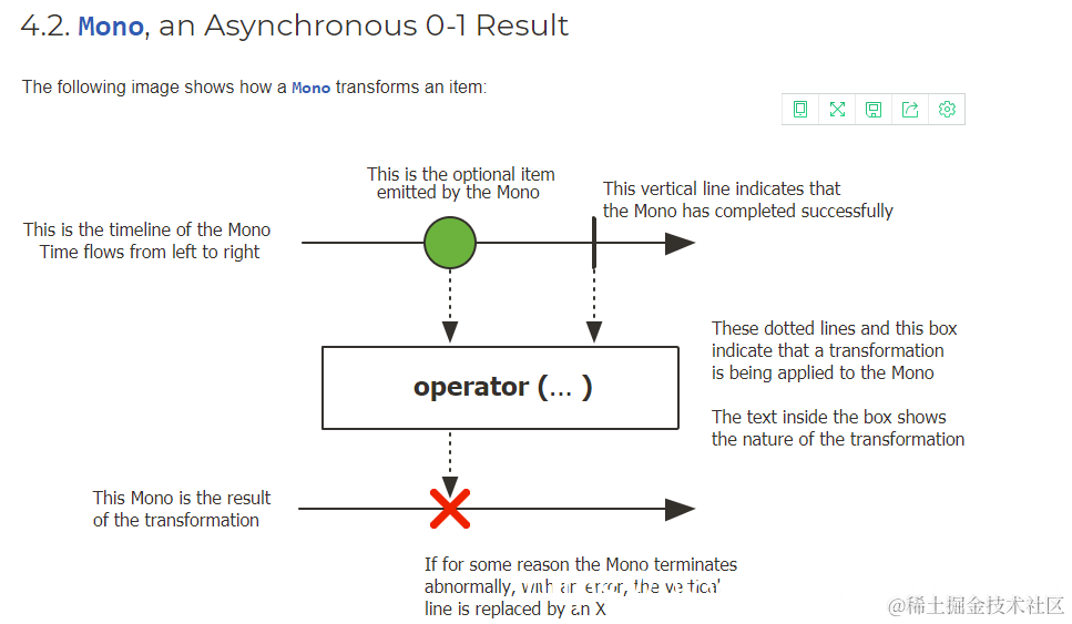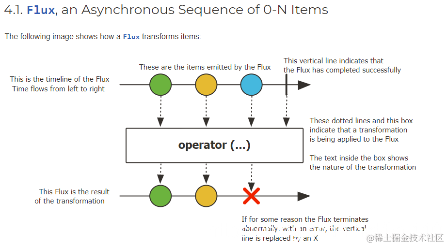 从图上可以看出,Flux能发出0~N个数据项,而Mono只能发出零或一个数据项。