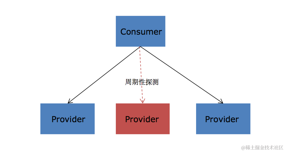 在生产实践中发现,如果仅仅依赖注册中心进行健康检查可能无法剔除所有的非健康实例。例如,在一个具体的场景中,某业务团队线上频繁出现超时,最终排查发现这是因为部署的某个容器磁盘写满,导致该实例处理请求时一直阻塞在写日志刷盘的过程,以至于客户端请求超时。对于这种情况,需要在框架中提供一种策略,使得我们能够发现这些非健康实例,即在对某个实例的请求频繁出错或者超时的情况下,临时屏蔽掉该实例,优先调用其他健康的实例,并定期探测,以便于在该实例恢复到健康状态之后,能及时把该实例加入到负载均衡的列表中。
