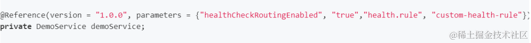 具体使用方式是通过parameters开启该功能并且指定健康监测策略,以注解方式举例: