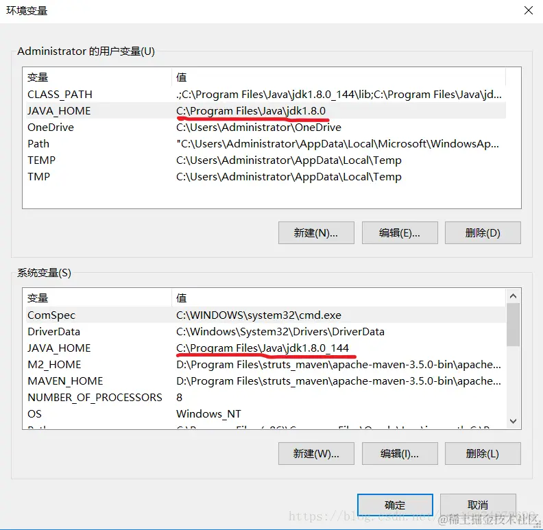 与系统变量JAVA_HOME 的路径格格不入,所以就出现了这个错误,你们配置的时候也要注意Adminstrator的用户变量