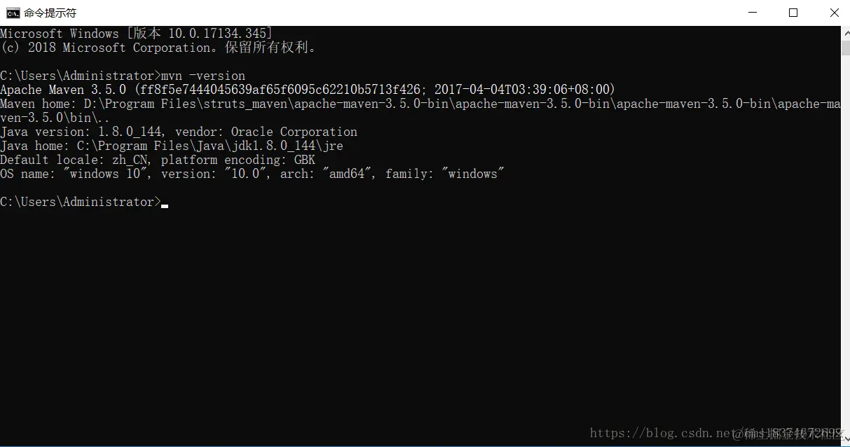 在提示框中输入 "mvn -version",就会看到以下信息。