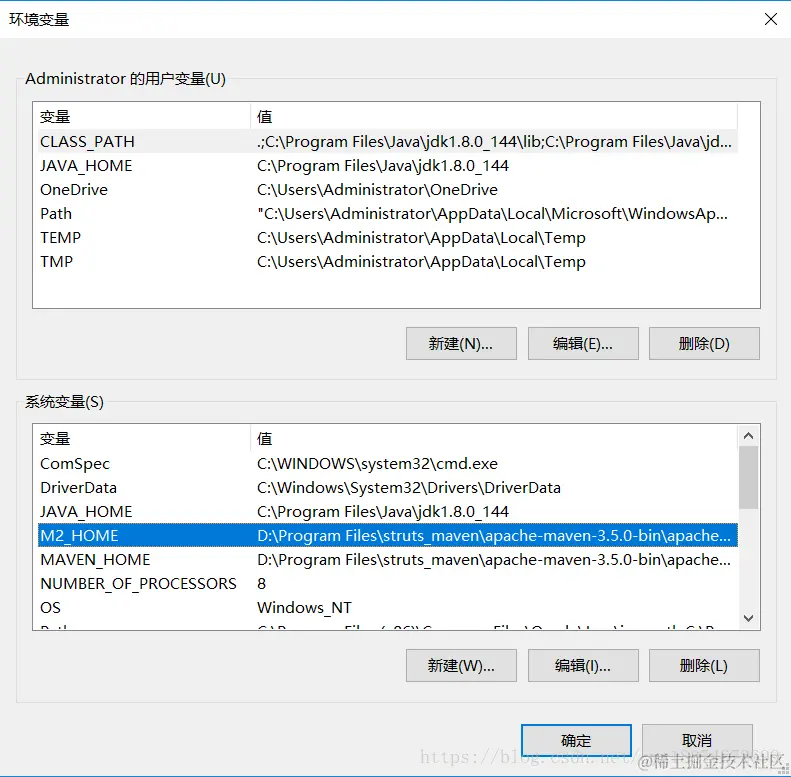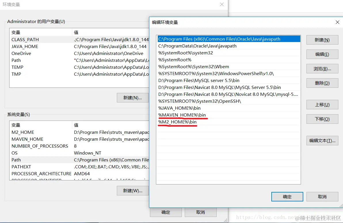 初学者需要配置两个变量名 MAVEN_HOME 和 M2_HOME 变量名都是你存放maven的路径