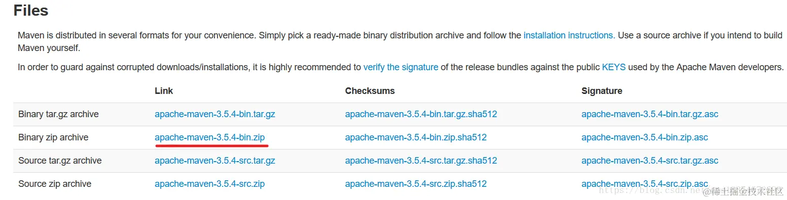 网上提供了maven下载路径 maven.apache.org/download.ht… 下载最新的maven,目前最新版本是maven-3.5.4