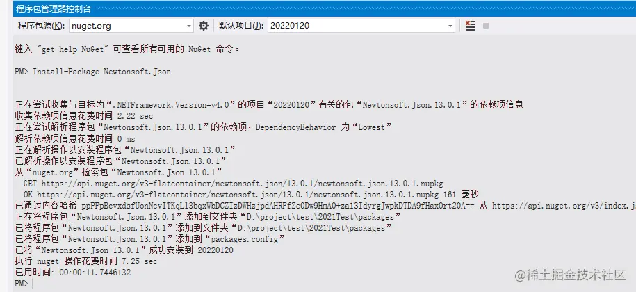 打开“程序包管理器控制台”执行下面代码,引入其dll组件。