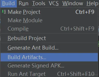 7.Make成功后,继续在Build菜单栏下,选择Build Artifacts...选项